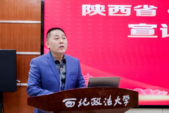 主持人陕西省《资本论》研究会副会长胡红安教授宣读名誉会长白暴力教授贺信