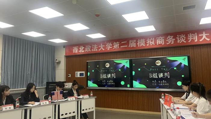 2024年5月25日,西北政法大学第二届模拟商务谈判大赛复赛在长安校区顺利举行。本次大赛获得广泛关注,我校有10个学院17个专业组成的146支队伍报名参赛,经过激烈角逐,最终有四支队伍进入复赛。